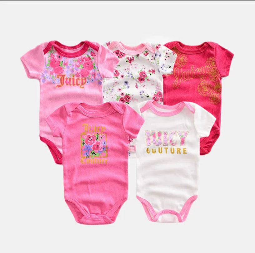 This set of five baby onesies offers a blend of style and comfort for your little one. Made with soft, breathable fabrics, each piece ensures gentle wear on delicate skin while providing ease of movement. The variety of fashionable designs makes dressing your baby both practical and charming, perfect for everyday use or special occasions. Durable construction promises long-lasting wear through multiple washes. Ideal for parents seeking a reliable, stylish wardrobe foundation for their infant.